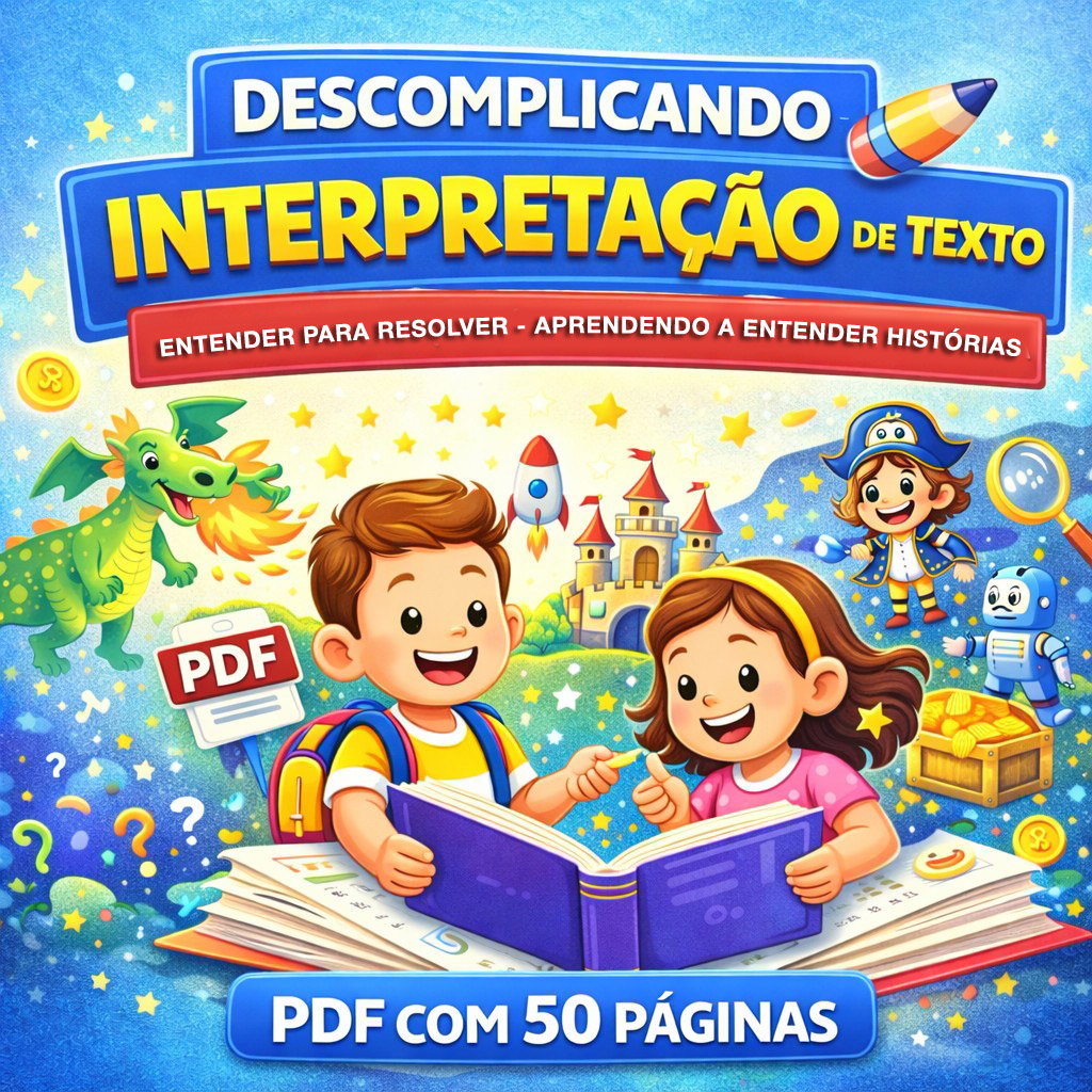 50 páginas em PDF Histórias infantis envolventes Ilustrações criativas que prendem a atenção Atividades de interpretação de texto Perguntas simples que estimulam o raciocínio